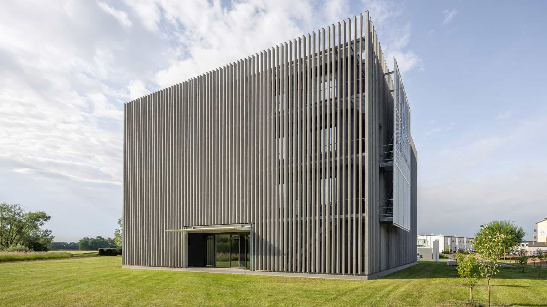 Hinter der markanten Lamellenfassade aus Fichtenholz arbeiten dezentrale Lüftungssysteme von Schüco, deren Leistungsfähigkeit ein Forschungsteam kontinuierlich auswertet.