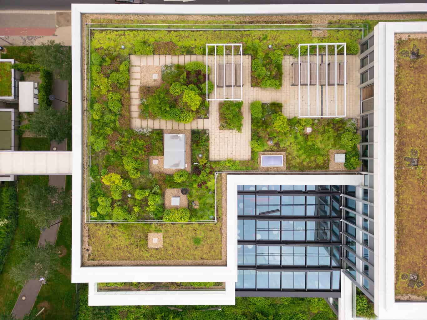 DKV Mobility hat sein Unternehmensareal am Hauptsitz in Ratingen seit Jahren kontinuierlich weiterentwickelt. Nach Fertigstellung des ersten Bauabschnitts im Jahr 2010 nutzte das Unternehmen nun das benachbarte Grundstück für einen Erweiterungsbau, den gläserne Brücken mit dem Bestand verbinden. Konrath und Wennemar Architekten Ingenieure aus Düsseldorf konzipierten das neue Gebäude und orientierten sich formal an der umliegenden Bebauung – darunter Wohnhäuser und ein Kindergarten. Gestaffelte Rücksprünge, eine Fassadenbegrünung mit Kletterpflanzen und ein begrünter Dachgarten setzen eigenständige architektonische und ökologische Akzente.