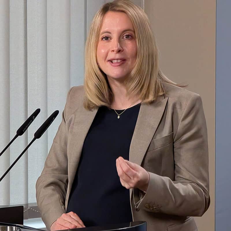 Bundesministerin der Justiz und für Verbraucherschutz Dr. Stefanie Hubig: „Der Gebäudetyp E ist ein bisschen wie Baupreisbremse und Bauturbo in einem. Denn einfaches Bauen kostet weniger und geht schneller. Genau dafür steht der Gebäudetyp E. Bislang wird in Deutschland fast immer nach dem Goldstandard gebaut. Dabei geht gutes und sicheres Wohnen oft auch günstiger. Nicht jeder braucht die fünfte Steckdose im Wohnzimmer.