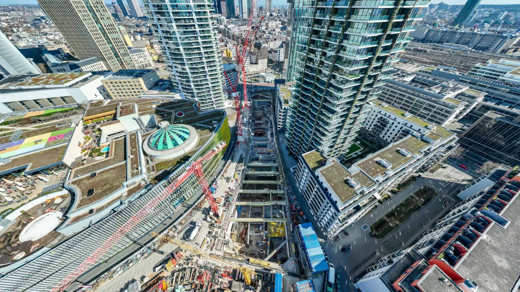 Auch die spätere Gestalt der Station wird erkennbarer: Die Lichtdome, die natürliches Tageslicht in den unterirdischen Stationsraum lenken, entstehen in Ortbeton. Mit der Verlängerung der U-Bahn-Linie U5 erhält das Frankfurter Europaviertel einen direkten Anschluss an die Innenstadt – und täglich tausende Fahrgäste eine neue ÖPNV-Verbindung. (mb)