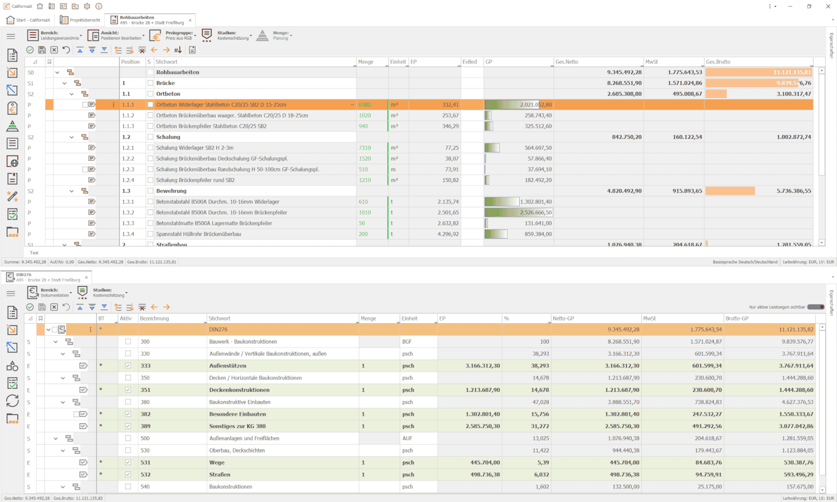 Beziehen die Bauherren Fördermittel, sind die Kosten schon in einem frühen Stadium nach der DIN 276 zu gliedern. Mit California ist eine automatische Kostendokumentation aller Projektstadien z. B. nach der DIN 276 oder nach allen anderen Standardkostengliederungen schnell, präzise und flexibel möglich. Stiegler erläutert: „Da die DIN 276 mit allen Unterkategorien hinterlegt ist, können wir die Kosten der entsprechenden Kostengruppe im Programm zuweisen und müssen diese nicht aufwendig aus der DIN herausziehen oder in Hilfswerken nachschlagen.“ Eine Detaillierung im weiteren Projektverlauf ist ebenfalls möglich.