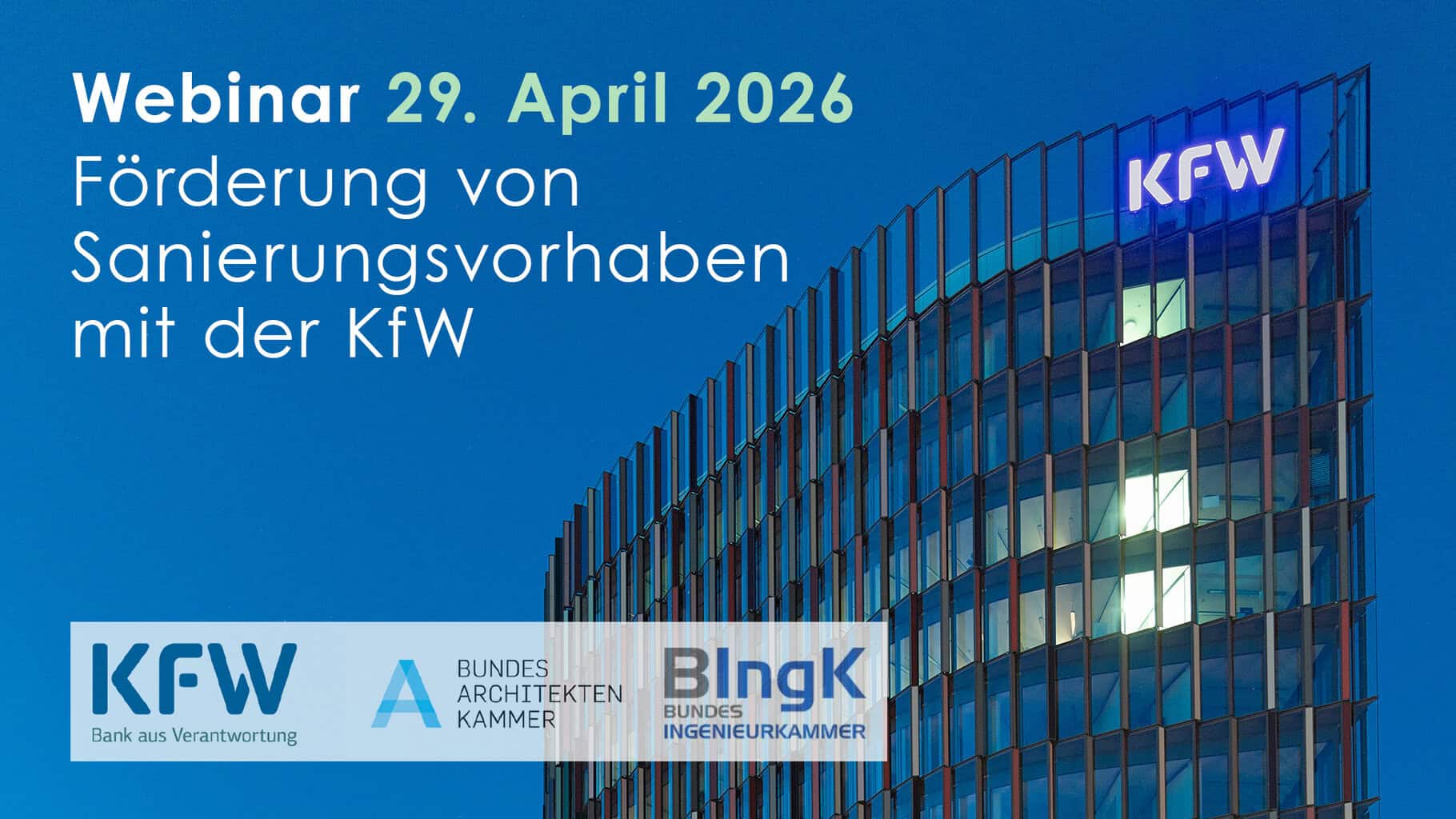 - Erfahren Sie in diesem Webinar alles Wichtige zu diesen Programmen und weiteren Förderangeboten der KfW im Gebäudebereich. Neben dem Vortrag stehen Ihnen die Referenten und Referentinnen im Chat für Fragen gerne zur Verfügung.