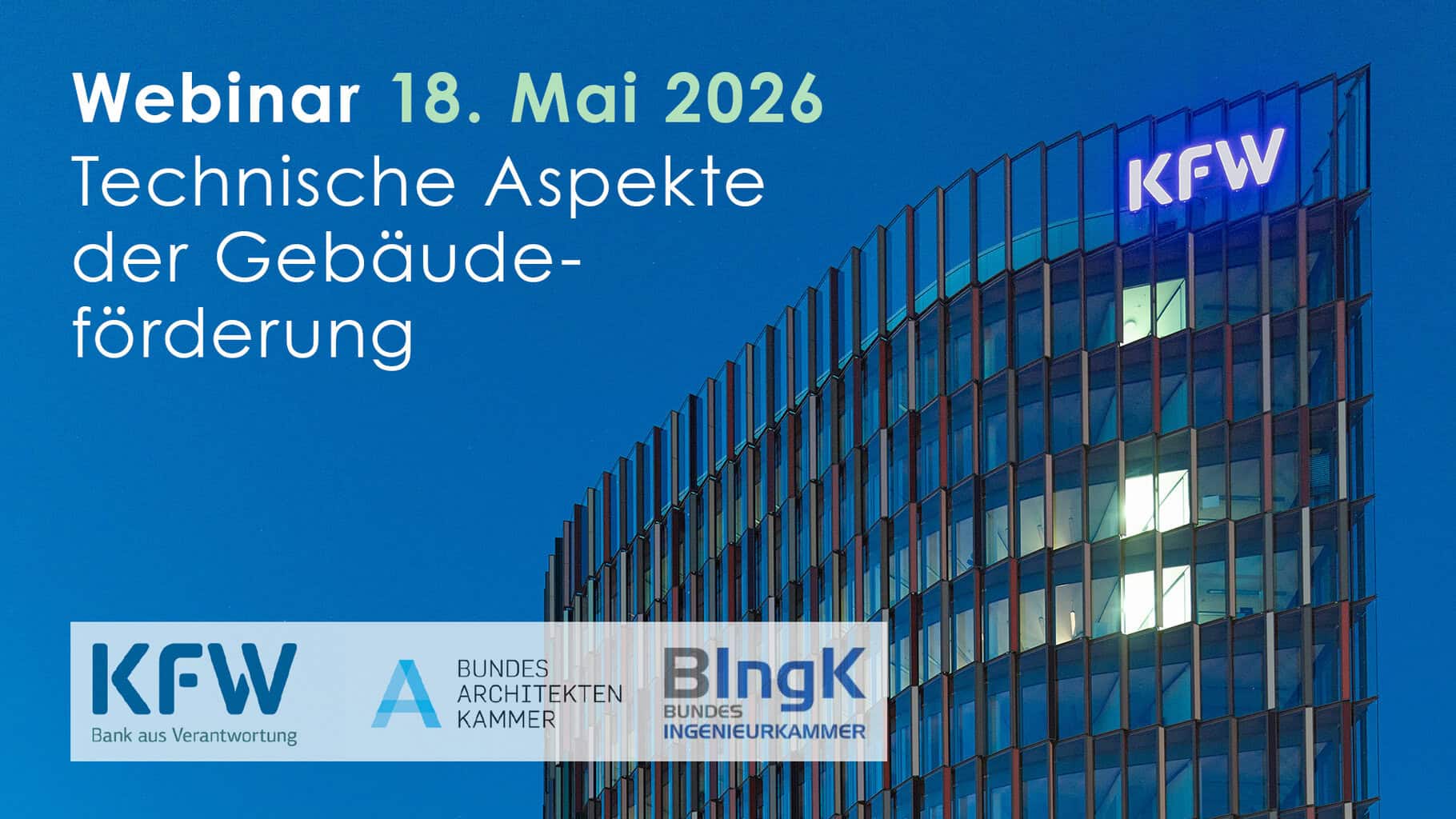 - Erfahren Sie in diesem Webinar das Wichtigste zu den technischen Voraussetzungen (Heizung, LCA-Analyse, systemische Sanierung, Bewertung von PV, etc.) in diesen Programmen. Neben dem Vortrag stehen Ihnen die Referenten im Chat für Fragen gerne zur Verfügung.