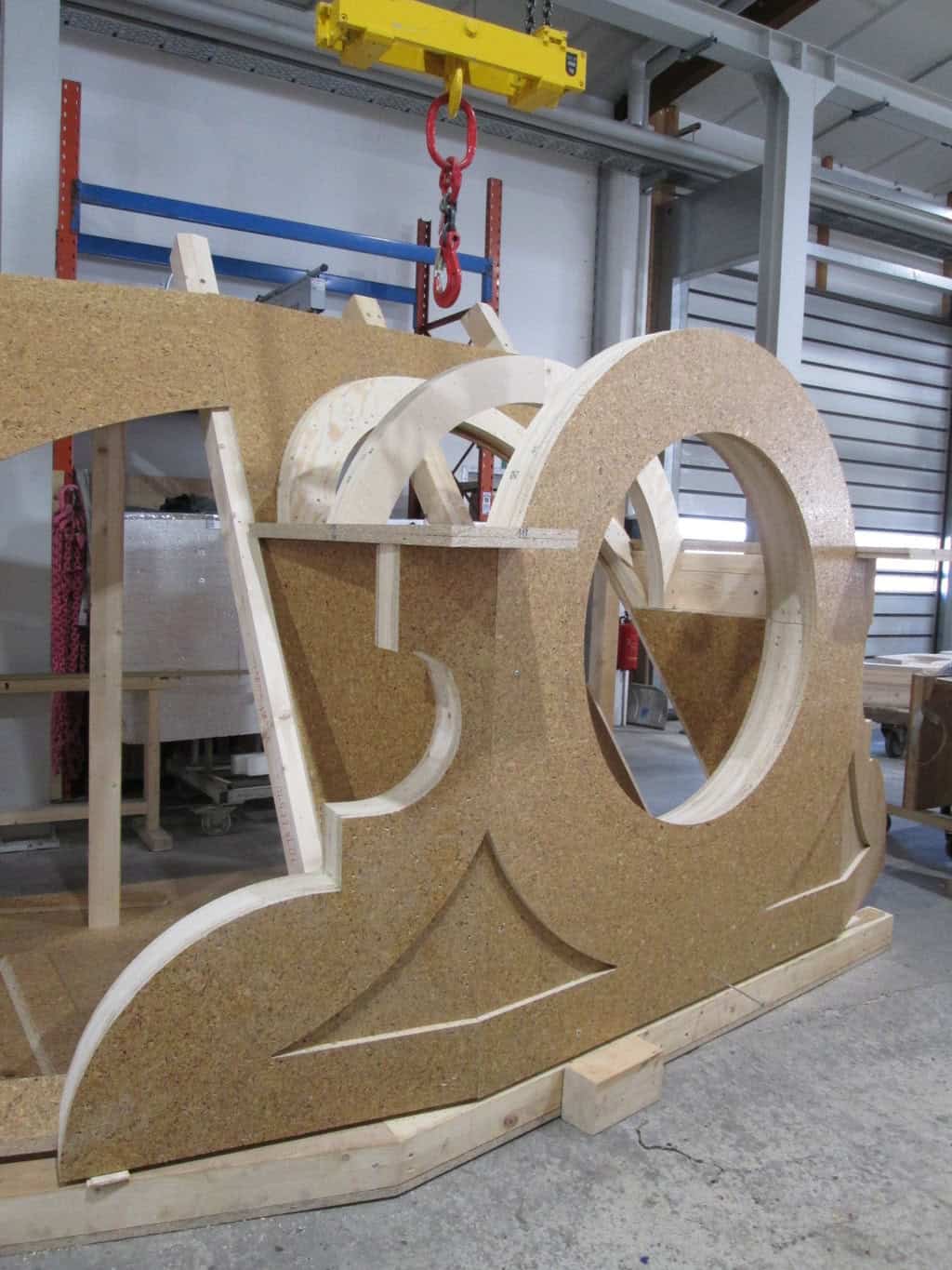 Geliefert wurden die Gauben so weit wie möglich vormontiert. Das hieß bei den Rundgauben, dass man nur die seitlichen Ornamente separat laden musste, weil die Gauben sonst nicht auf den LKW gepasst hätten. Die halbrunde Gaube über dem Gastro-Eingang wurde für den Transport in zwei Hälften geteilt.