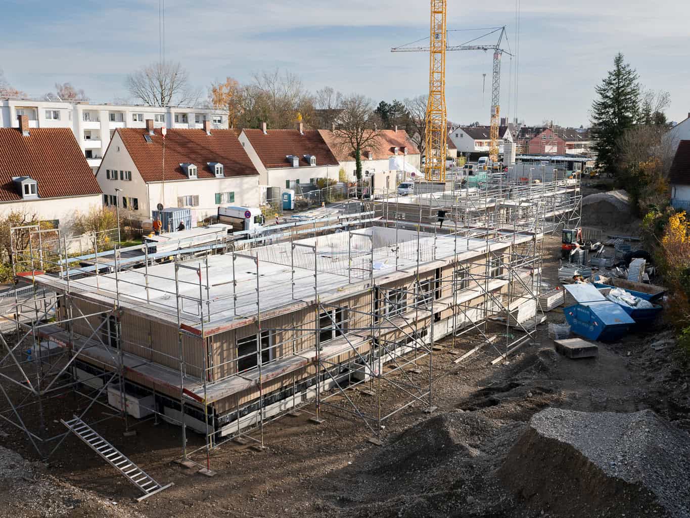 Das Münchner Wohnungsunternehmen IGEWO erweitert seine bestehende Siedlung mit rund 800 Wohnungen um sechs Gebäude. Der Züblin Bereich Augsburg übernimmt in Kooperation mit Züblin Timber die Lose Erdbau, Rohbau, Tragwerk mit Gebäudehülle und Fertigbäder. Die Tragwerksplanung einschließlich Bauphysik der Leistungsphase fünf gehört ebenfalls zum Auftrag. Der Holzbau ist im Oktober 2025 gestartet.