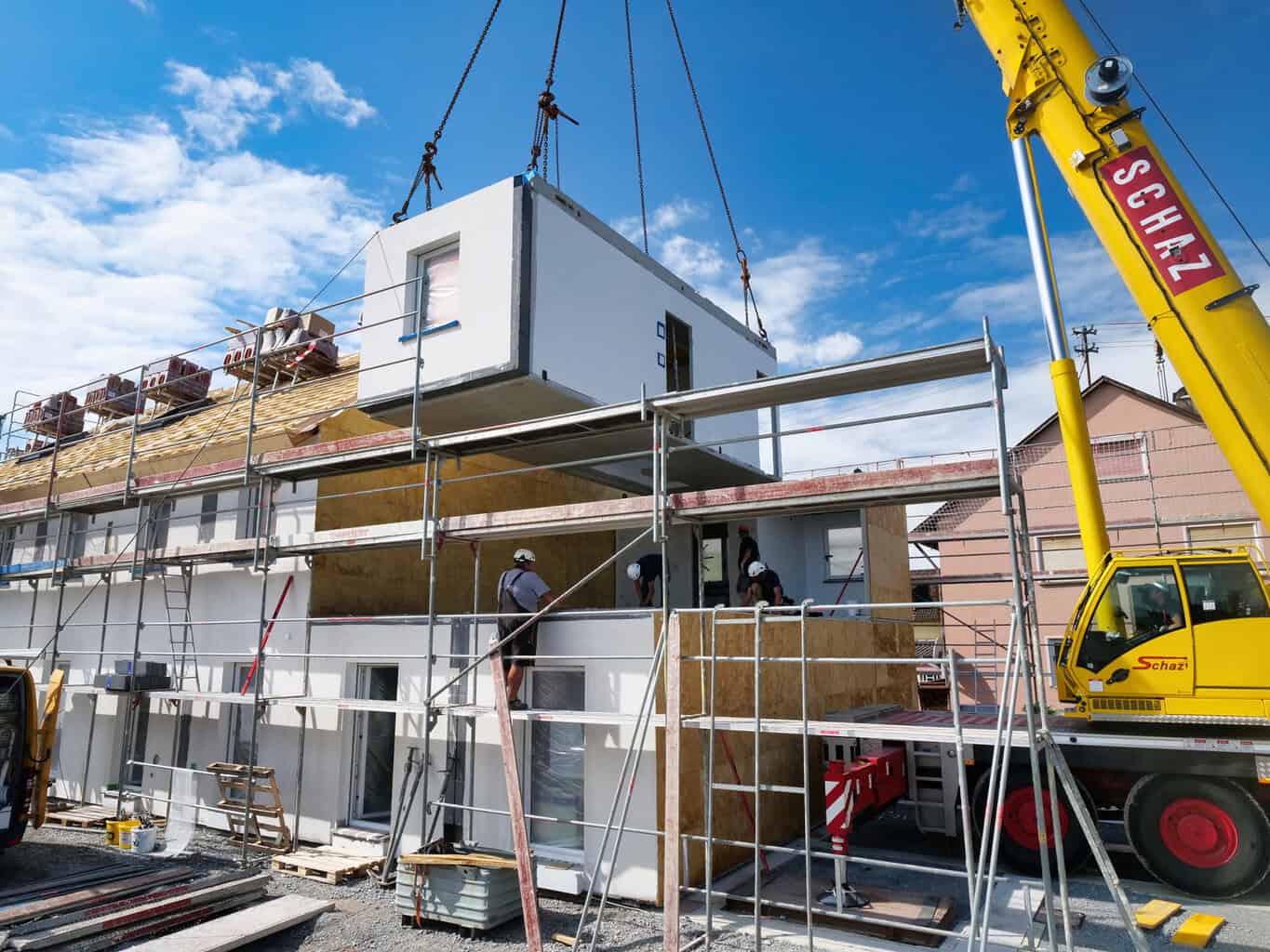 Trotz estrichfreier Ausführung erreichen die Module den erhöhten Schallschutzstandard nach DIN 4109-2015. Eine systemseitige Deckenabhängung mit 80 Millimeter starker Mineralwolleinlage macht dies möglich. Energetisch erfüllt das System die Standards Effizienzhaus 40 und 55, womit Projekte über aktuelle KfW-Programme förderfähig sind. Da das System zudem die Kriterien für das Qualitätssiegel Nachhaltiges Gebäude (QNG) erfüllt, profitieren Investoren von Sonderabschreibungen im Rahmen des Wachstumschancengesetzes. Insbesondere ist eine Kombination dieser Sonder-AfA mit dem KfW-Förderprogramm „Klimafreundlicher Neubau im Niedrigpreissegment“ (KNN) umsetzbar.