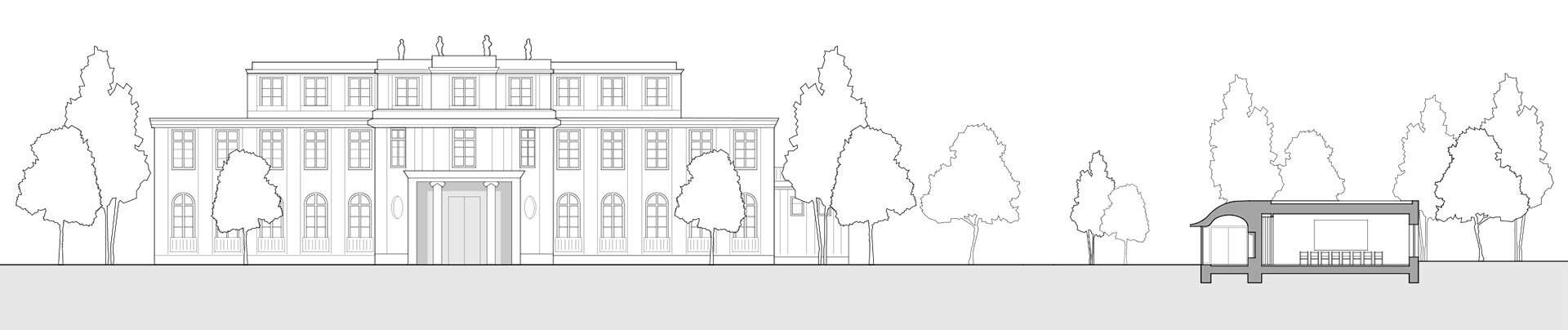 Eines der prägendsten Elemente des Seminargebäudes auf dem Areal der Gedenkstätte „Haus der Wannsee-Konferenz“ in Berlin ist zweifellos das gewellte, weit ausschwingende Vordach. Wie die übrige Gebäudehülle besteht es aus Liapor-Leichtbeton. Und trotz seiner Mächtigkeit von bis zu einem Meter strahlt es eine dezente, subtile Dynamik aus. „Der Schwung des Daches vermittelt zwischen Haupthaus und Neubau, verleiht diesem aber auch sein unverwechselbares Gesicht. Gleichzeitig lässt es das Gebäude optisch niedriger wirken“, erklärt Thomas Eysholdt von Staab Architekten, die 2015 den Wettbewerb mit dem Entwurf des eigenständigen, rund 425 Quadratmeter großen einstöckigen Neubaus gewannen. Neben dem Dach wurde auch ein Großteil der Außenwände mit Liapor-Leichtbeton errichtet, und zwar in 60 Zentimetern Stärke.
