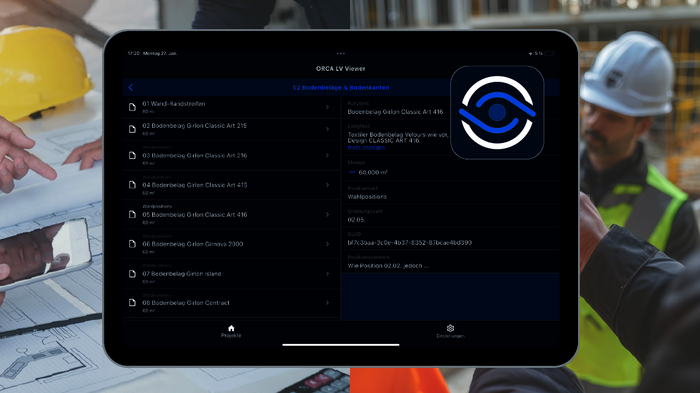 Den Anfang macht Den Anfang macht der ORCA LV Viewer. Mit dieser Anwendung lassen sich Leistungsverzeichnisse jederzeit und überall abrufen – sei es auf der Baustelle, bei Bieter- oder Mängelbesprechungen oder während der Nachtragsplanung. Eine übersichtliche Baumstruktur sorgt für eine klare Darstellung relevanter LV-Informationen, darunter Positionen, Mengen, Einheiten, Preise sowie Kurz- und Langtexte.