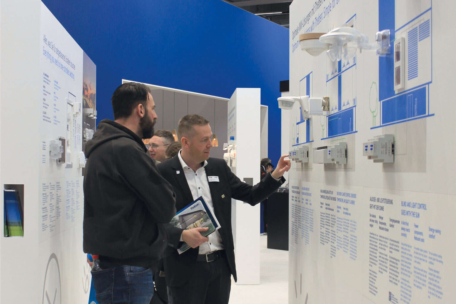 Das Unternehmen präsentiert die Geräteserie iONprime – eine Kombination aus Design und Gebäudetechnik. Der KNX-Tastsensor iONprime PB KNX und der Raumcontroller iONprime CP 4 KNX ermöglichen die Steuerung von Licht, Klima und weiteren Funktionen über Wippen oder ein Vier-Zoll-Touchdisplay mit bis zu 48 Funktionen. Materialien wie Aluminium, Messing oder matt lackiertes Metall sowie Kunststoff stehen zur Verfügung. Das System integriert sich in die Raumarchitektur.