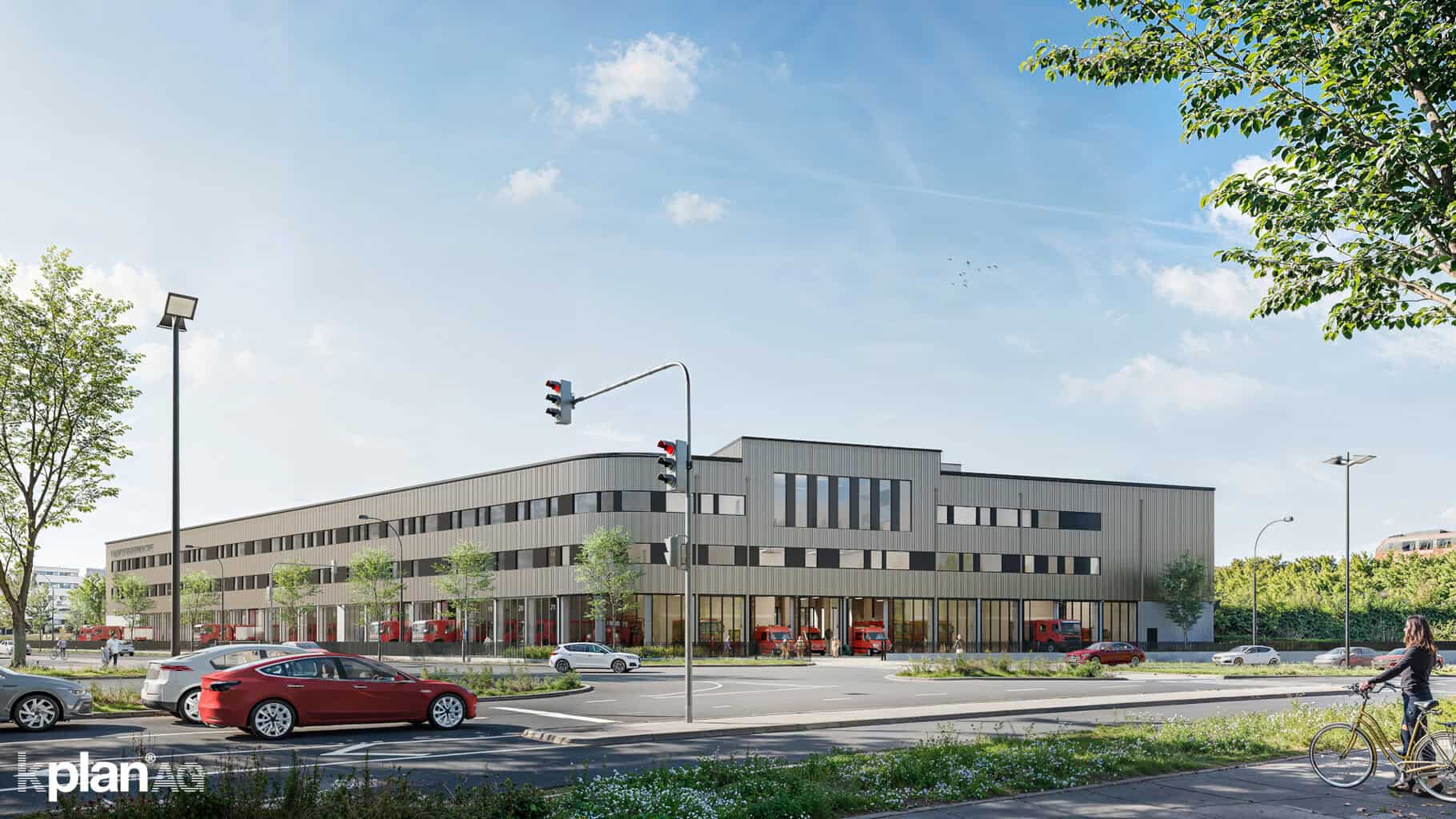 Den zentralen Standortnachteil wandelten die Planer in einen energetischen Vorteil um: „Der städtische Hauptabwasserkanal der benachbarten Kläranlage querte das Baufeld. Der Kanal wurde umverlegt und ein rund 80 Meter langer Wärmetauscher eingebaut“, erklärt Jasmin Rath, Projektleiterin beim Architekturbüro kplan AG aus Siegen. „Damit lässt sich das Gebäude heizen und kühlen – jahreszeitenunabhängig und ohne fossile Energieträger.“ Nicht genutzte Wärmeenergie speichert das System unterirdisch. Photovoltaik-Anlagen auf begrünten Dachflächen und der Stellplatz-Überdachung sollen den Bau nahezu energieautark machen.