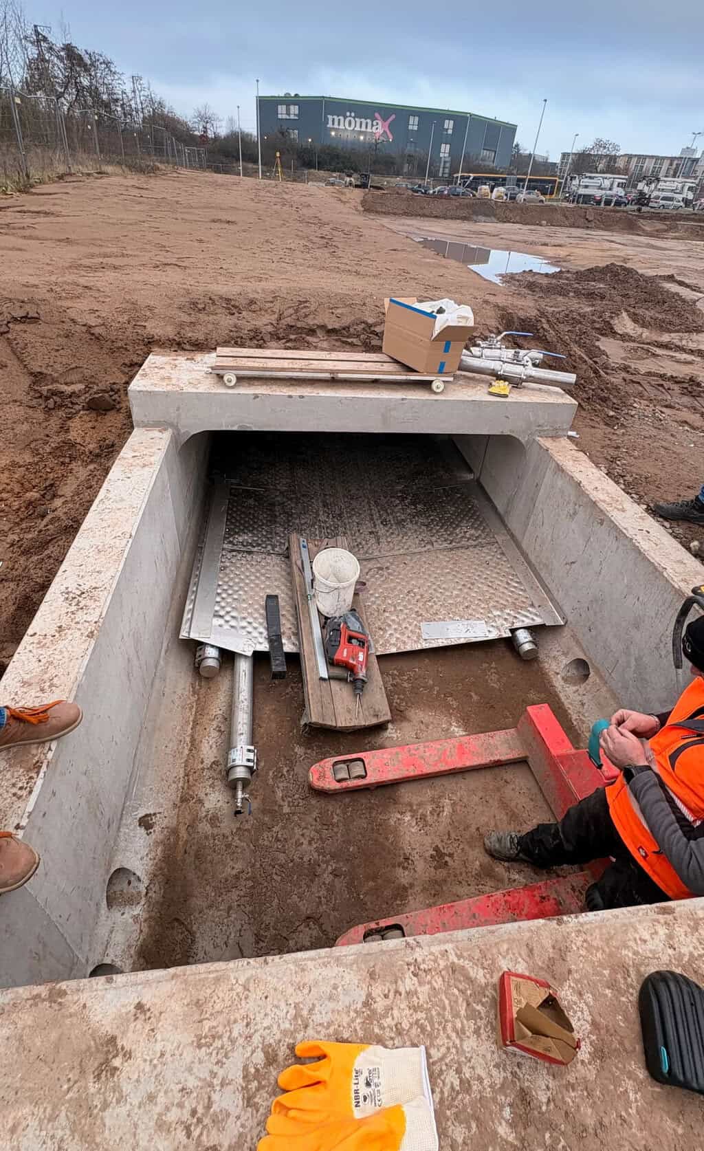 Das vorgesehene Areal an der Pfnorstraße galt lange als wenig geeignet. Drei Jahrzehnte lag die rund drei Hektar große Fläche brach. Die Baureifmachung erforderte das Sieben von 25.000 Kubikmetern Boden, die Räumung von Kampfmitteln und die Entsorgung von tonnenweise Metallschrott.