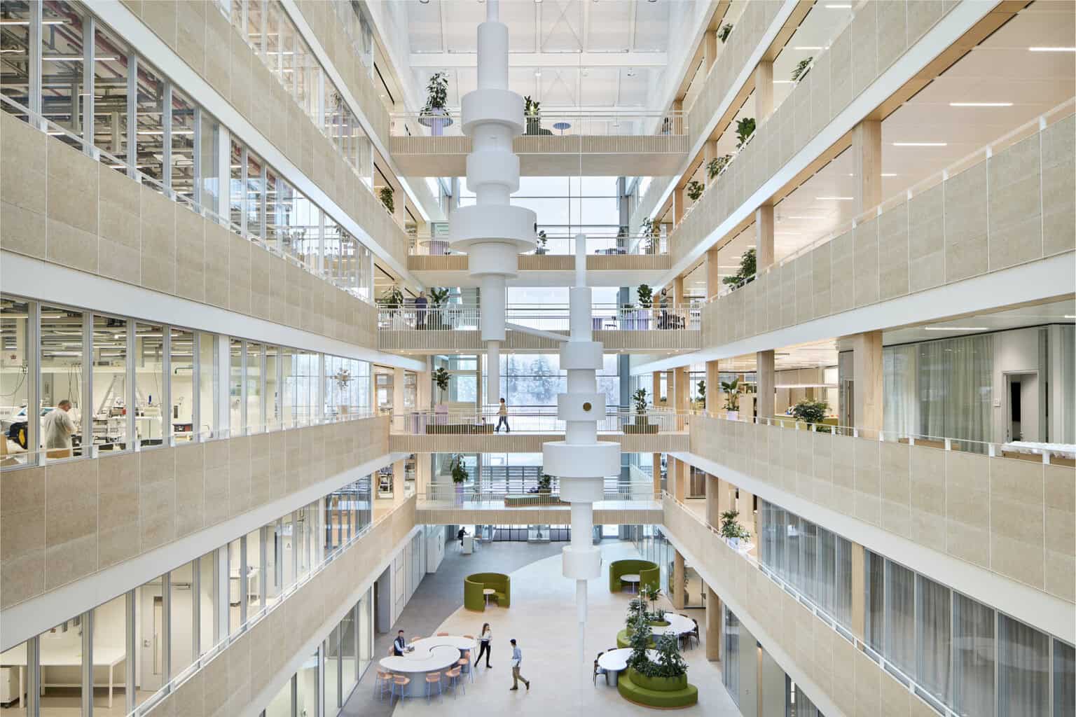 Drei Bausteine ermöglichen den energieeffizienten Betrieb: die Holz-Hybridbauweise, ein Niedertemperaturnetz, das Abwärme nutzt, sowie eine Photovoltaikanlage auf dem Dach. Mehr als 4.400 Sensoren erfassen den Energieverbrauch in Echtzeit. Ein digitales System steuert und dokumentiert, ob und wie die Laborgeräte besetzt sind. Das Gebäude bietet Platz für 1.000 Mitarbeitende. Mitte Februar 2026 haben Projektbeteiligte sowie Gäste aus Politik und Wirtschaft den Neubau eröffnet.