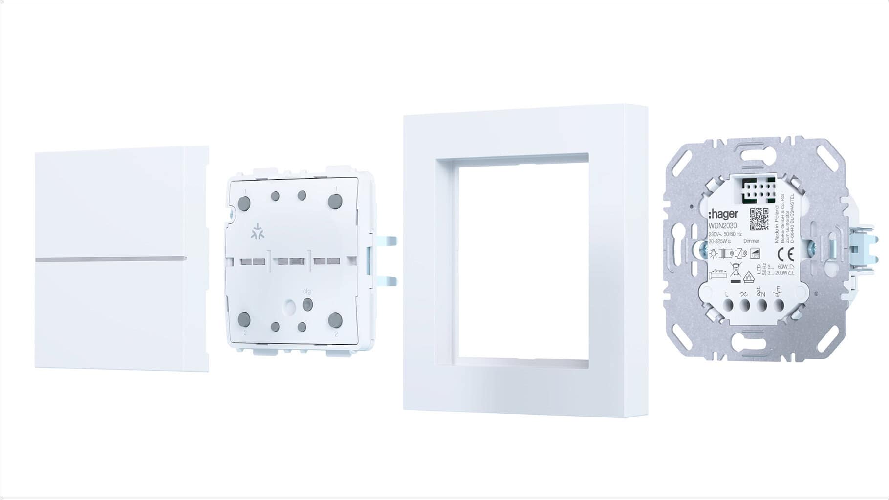 Die Elektronikeinsätze hat Hager neu konzipiert: In Verbindung mit entsprechenden Applikationsmodulen sind sie Matter-fähig. Der herstellerübergreifende Matter-Funkstandard ermöglicht gesicherte Kommunikation zwischen Geräten verschiedener Marken – von Lampen über Sensoren bis zu Thermostaten. Die Inbetriebnahme erfolgt per QR-Code oder NFC-Setup und läuft über Plattformen wie Samsung SmartThings, Apple Home Kit, Google Home oder Amazon Alexa.