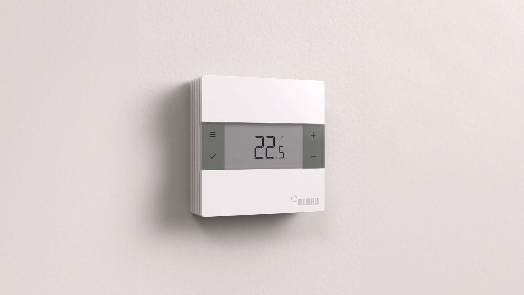 Der Regler arbeitet mit vier kapazitiven Tasten. Nutzer nehmen Einstellungen über eine Menütaste vor, die eine selbsterklärende Navigation ermöglicht. Ein großformatiges LCD-Display zeigt die Betriebsdaten an. Das Gehäuse gibt es in weißer oder schwarzer Ausführung. Die flache Bauform erlaubt eine wandbündige Integration in verschiedene Raumkonzepte.