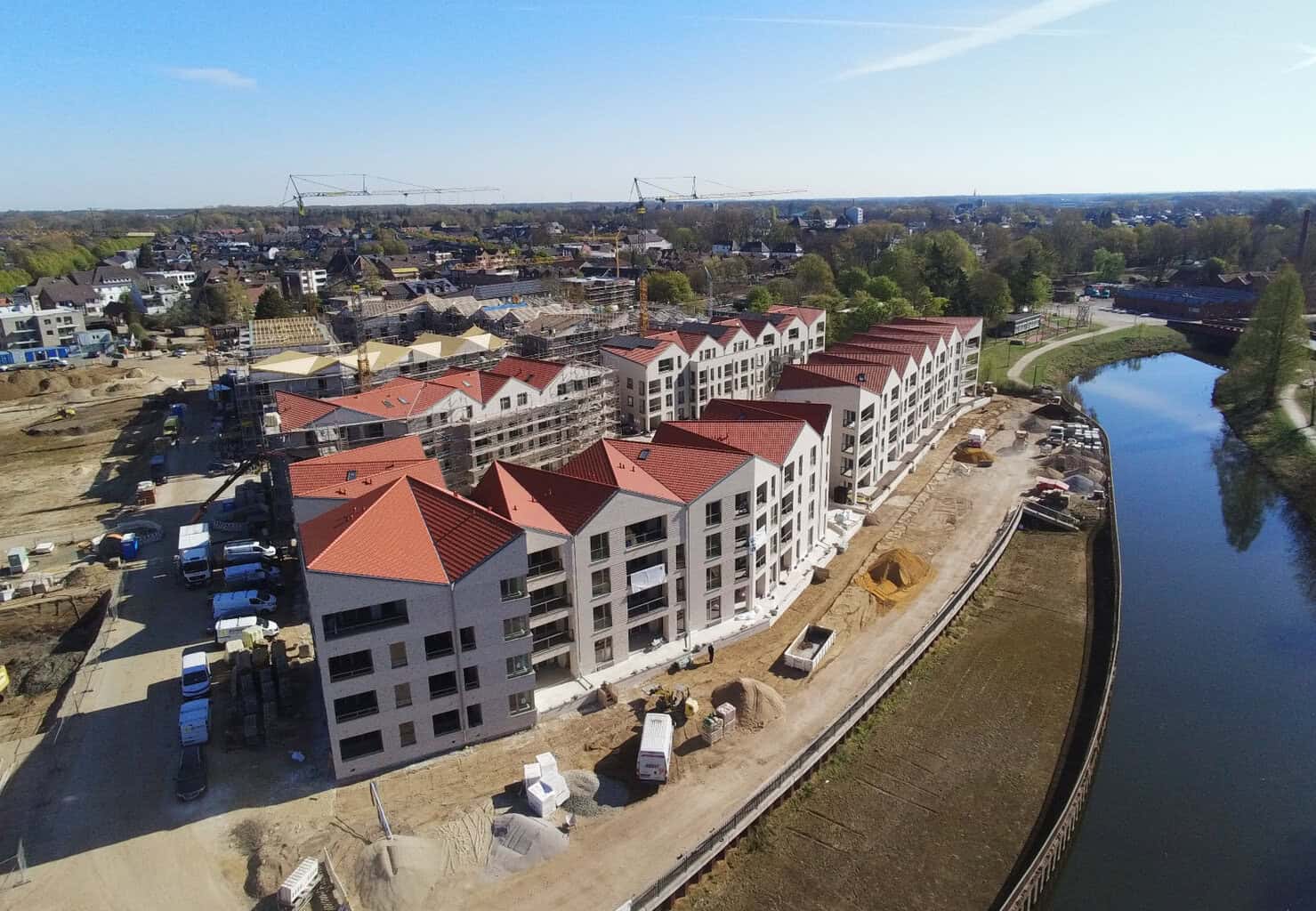 In Bocholt im Westmünsterland entsteht derzeit das Wohnquartier „7 Höfe“ mit einem Investitionsvolumen von rund 130 Millionen Euro. Die Bauherrin Stadt + Quartier GmbH – ein Joint Venture der WohnBau Westmünsterland und der Sparkasse Westmünsterland – errichtet auf einer Fläche von 42.000 Quadratmetern insgesamt 375 energieeffiziente Wohnungen in Flussnähe zur Bocholter Aa. Das Projekt umfasst zudem soziale Infrastruktur wie einen Quartierstreff und einen Kindergarten. Die Bauarbeiten begannen im Sommer 2023, die ersten Mieter beziehen Anfang 2026 ihre Wohnungen. Das Projekt gliedert sich in sieben unterschiedlich gestaltete Bauabschnitte. Die weitläufige Anordnung der Gebäude prägt das städtebauliche Konzept. Bürgermeister Thomas Kerkhoff bezeichnete die „7 Höfe“ anlässlich des Spatenstichs im Juni 2023 als das „spannendste Wohnbau- und Umnutzungsprojekt im gesamten Münsterland“.