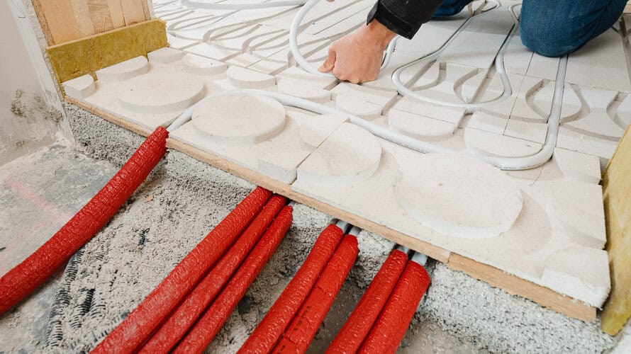 Im Bereich des Heizkreisverteilers wurde eine individuelle Lösung umgesetzt, um eine Überhitzung zu vermeiden. Die Heizrohre wurden vor der Dämmung gedämmt und auf der Rohdecke fixiert. Nach der Druckprüfung folgten Schüttung, Decklage und Oberbelag. So konnte die Wärme gezielt in die Wohnräume geleitet und gleichzeitig der Energieverlust minimiert werden. Fräs- oder Spachtelarbeiten waren nicht erforderlich.