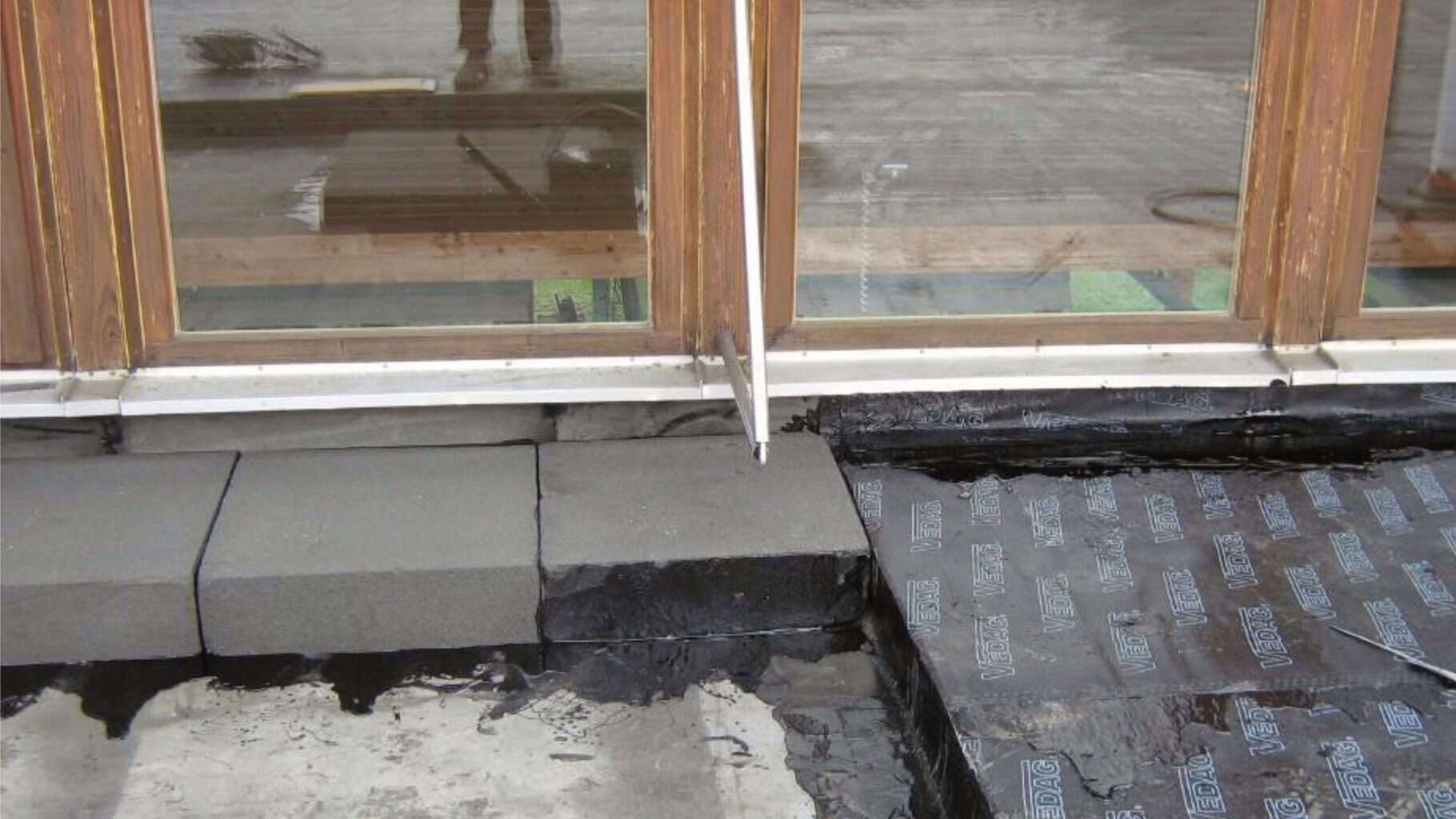 Auf diese Trennlage kommt Schaumglas als Dämmung. Die Verklebung ist sowohl mit Heißbitumen als auch mit Kaltkleber möglich. Um eine durchgehende, wärmebrückenfreie Dämmung zu erzielen, verlegen die Handwerker die Dämmplatten vollflächig und mit gefüllten sowie versetzten Fugen. So entsteht eine kompakte, dampfdichte Dämmschicht, in der sich kein Wasser ausbreiten kann.