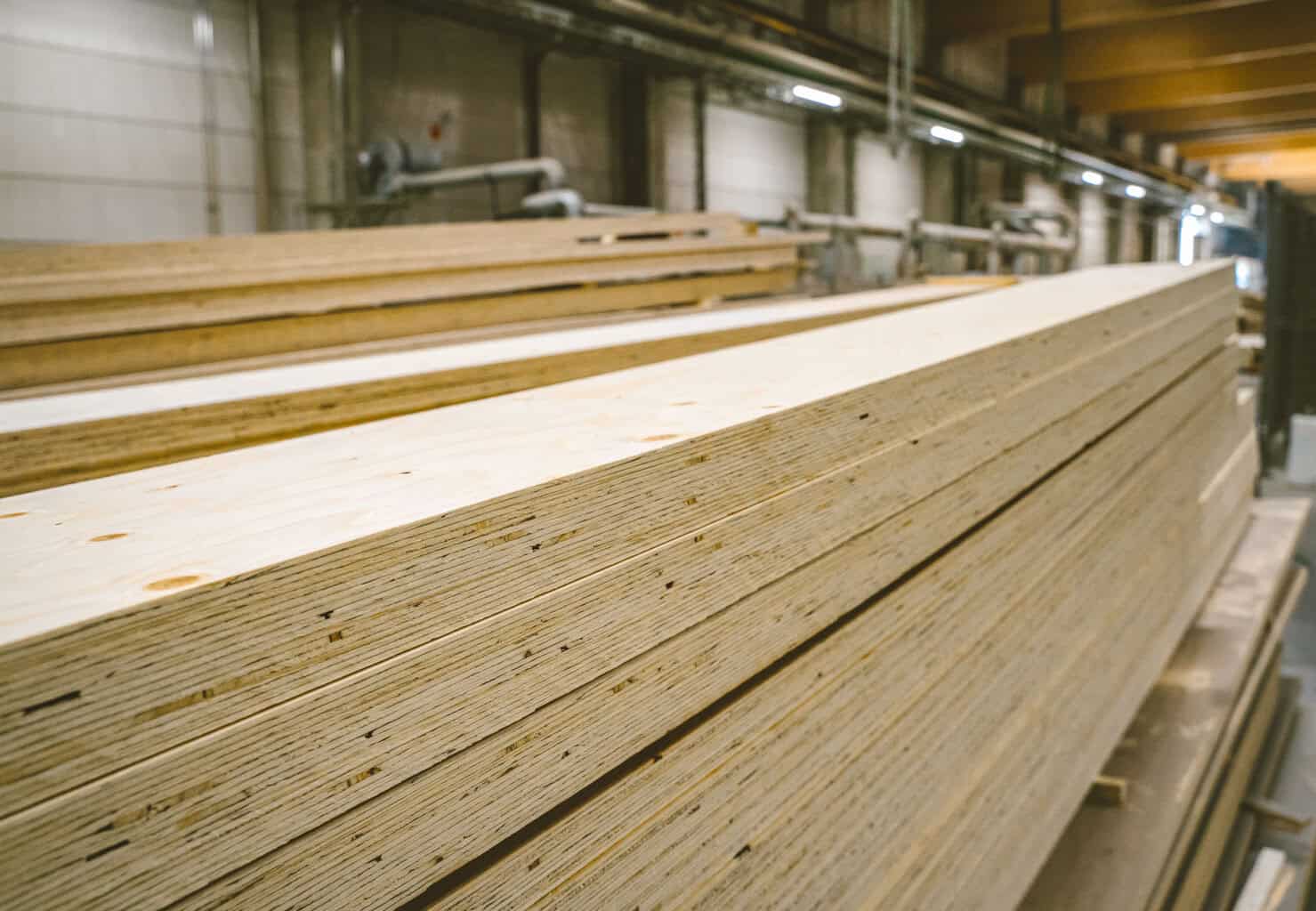 Die mehrlagige Furnierstruktur reduziert Quellen, Schwinden und Verdrehen gegenüber Massivholz deutlich – ein entscheidender Vorteil bei großformatigen Bauteilen und engen Anschlusstoleranzen. Für vorgefertigte Elemente und industrielle Fertigungsprozesse ergibt sich daraus eine verlässliche Maßhaltigkeit und Formstabilität.