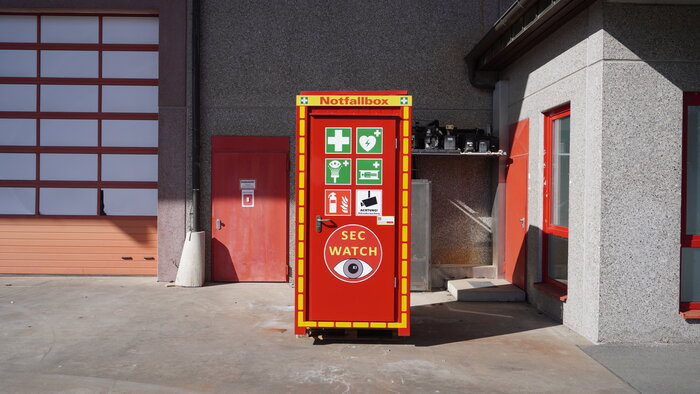 Die Box ist mit einem intelligenten, KI-gestützten Kamera-System ausgestattet. So meldet die fest installierte Bullet-Kamera an eine vorher definierte Stelle, dass sich eine Person in der Box befindet. Sie meldet zudem, wenn beispielsweise der Verbandskasten oder der Defibrillator entfernt wurde und sie erinnert den Verantwortlichen nach einem festgelegten Zeitraum per E-Mail daran, dass diese Gegenstände wieder ersetzt werden müssen.