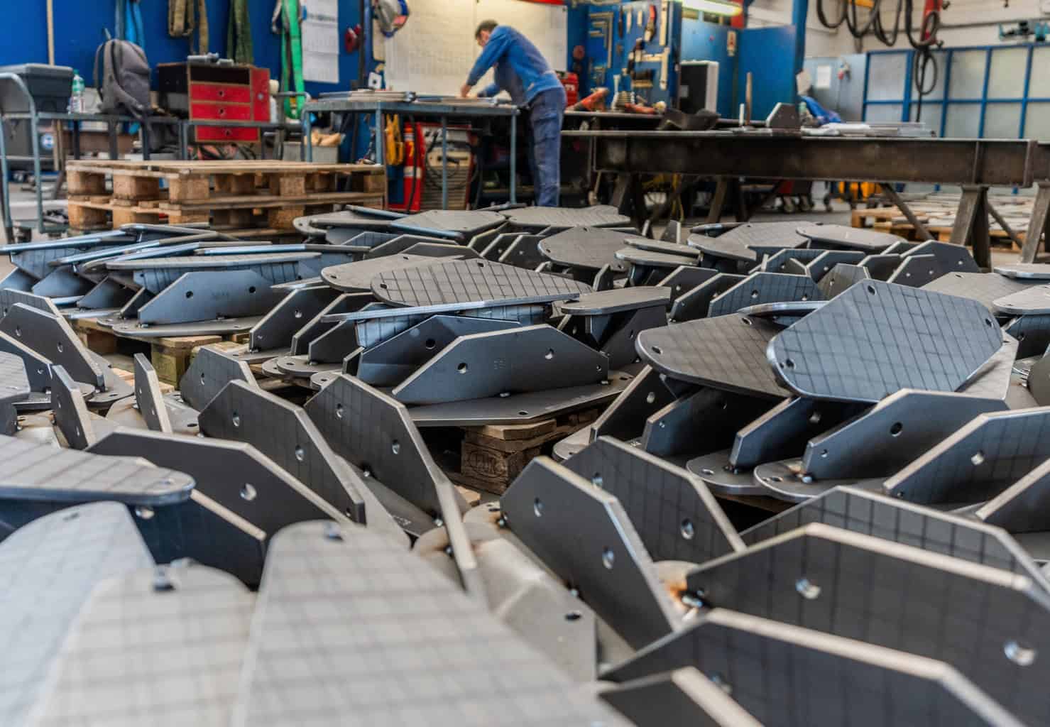 Die Dachkonstruktion kombiniert Brettschichtholz und feuerverzinkten Stahl. Das Holz stammt zu einhundert Prozent aus PEFC-zertifizierten Quellen und reduziert den CO₂-Fußabdruck. Das Partnerwerk in Westerkappeln fertigte die Holzbauteile, die Stahlkomponenten entstanden in der Produktion in Heiden.