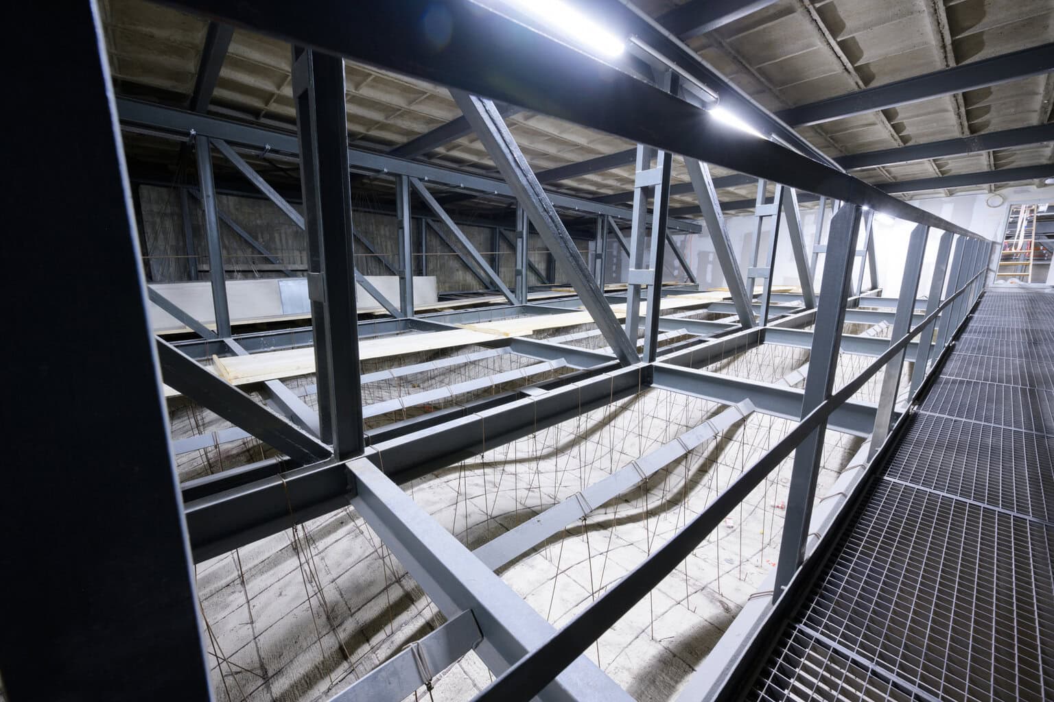 Drei Bauabschnitte über Saal, Bühne und Bar