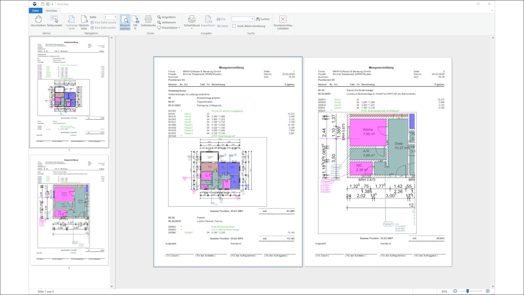MWM Software & Beratung liefert mit der nächsten Version den Ausdrucksgenerator List & Label in der Revision 31.0 aus. PDF-Dokumente, die in der Mengenermittlung und im Aufmaß hinterlegt sind – etwa Planausschnitte aus DIG-CAD, eingescannte Aufmaßzettel oder Lieferscheine –, gewinnen in der Dokumentation zunehmend an Bedeutung. Der aktualisierte Ausdrucksgenerator gibt diese eingebetteten PDF-Dokumente deutlich schneller und in höherer Qualität aus.