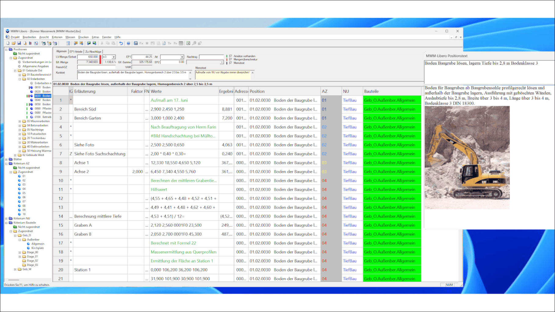 Enthalten die Positionen eines Leistungsverzeichnisses Erklärungen in Form von formatierten Texten, Bildern oder Tabellen, stellt MWM-Libero diese nun automatisch dar. Bislang übernahm das Programm die Texte ohne jegliche Formatierung. Anwenderinnen und Anwender platzieren die Fenster mit den formatierten LV-Texten frei auf dem Bildschirm und können die Inhalte so jederzeit beim Abrechnen nachlesen.