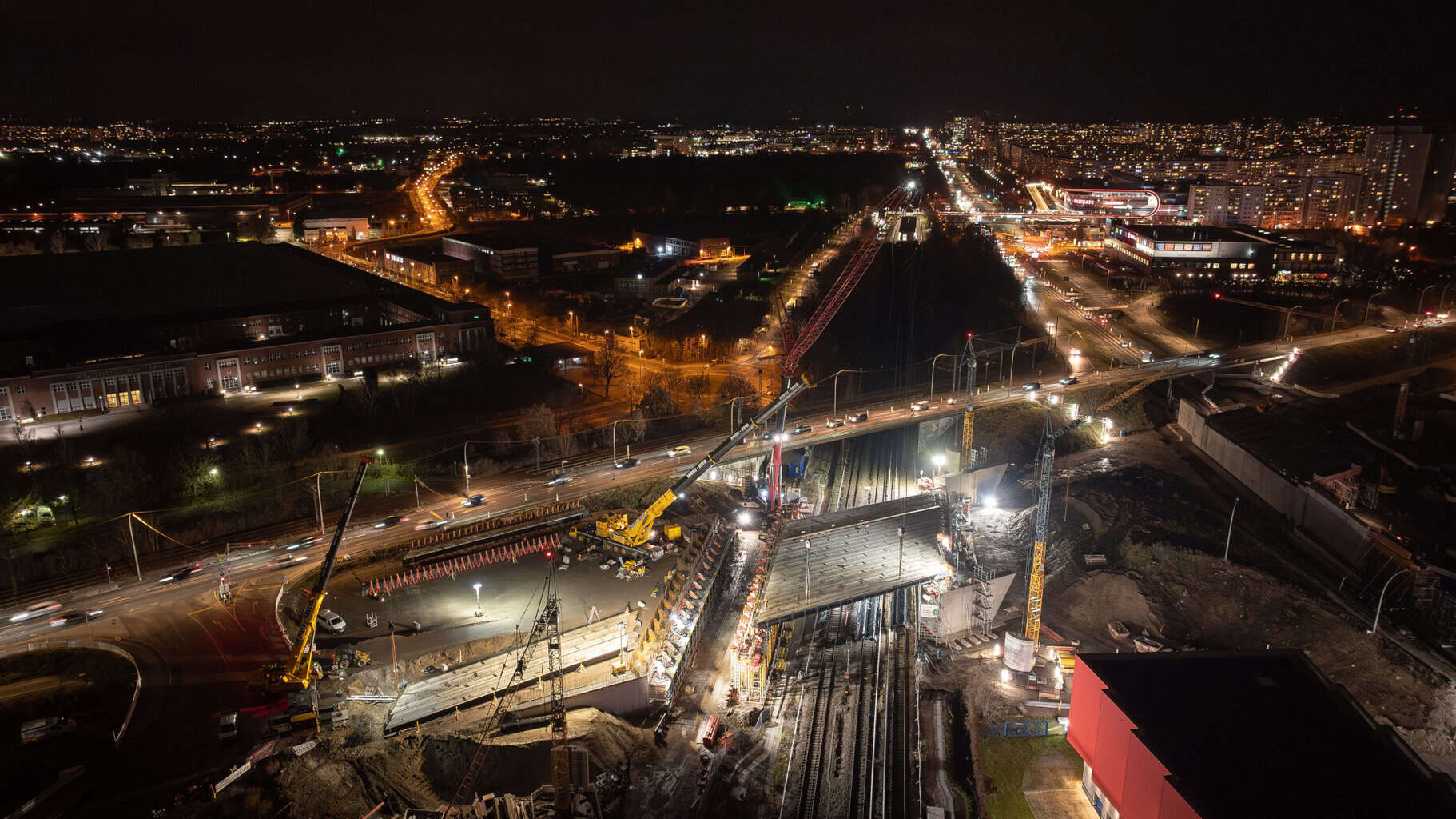 Ein zentraler Fortschritt ist Ende November gelungen: Während einer 32-stündigen Sperrpause zwischen dem 29. November und dem 1. Dezember 2025 montierten die Bauteams 17 VFT-Träger für das Bauwerk 9n über den bestehenden Gleisen. Zuvor war am 25. November die Verkehrsumlegung an der Märkischen Allee erfolgt – ein entscheidender Schritt zur Sicherung der weiteren Bauphasen. Bereits am 11. und 12. November hatten Fachkräfte die Fertigteile des Bauwerks 8n im Abschnitt A10–A20 installiert.
