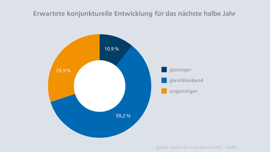 Repräsentative Umfrage des Instituts für Freie Berufe (IFB) im Auftrag des BFB vom 17. März bis 28. April 2025 unter rund 1.700 Freiberuflerinnen und Freiberuflern zur Einschätzung ihrer aktuellen wirtschaftlichen Lage, der voraussichtlichen Geschäftsentwicklung in den kommenden sechs Monaten sowie ihrer Personalplanung und Auslastung.
