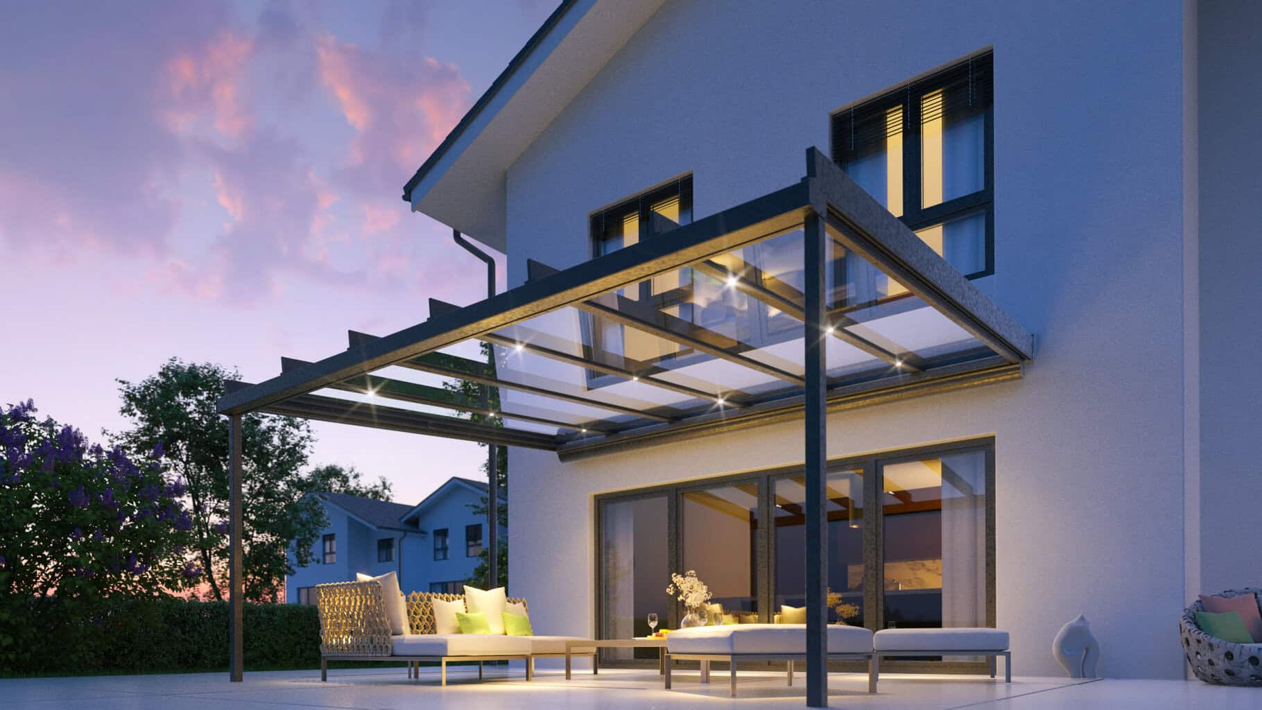 Die SunChill-Serie umfasst Terrassendächer mit Breiten von vier bis sechs Metern und Tiefen von drei bis vier Metern. Das Rastermaß von einem Meter in der Breite und fünfzig Zentimetern in der Tiefe erzeugt vierzehn verschiedene Varianten mit und ohne Mittelstütze. Die Dachflächen reichen von zwölf bis vierundzwanzig Quadratmetern. Für Sonderfälle fertigt das Unternehmen gegen Aufpreis millimetergenaue Lösungen in den Maßen drei bis sechs Meter Breite und zwei bis vier Meter Tiefe.
